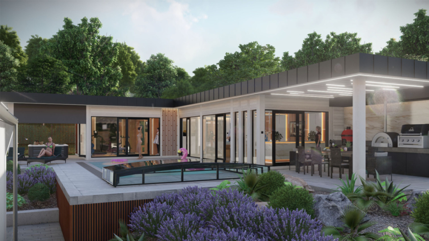 | Tartozékok, szállítás, beszerelés, beüzemelés | Az ár NEM tartalmazza a szállítás és telepítés költségeit. Az ár Nem tartalmazza az engedélyeztetést, alapozást, áram és gépészeti kiállásokat. Az ár tartalmazza a tartozékokat. A látványterven szereplő jacuzzi és medence csak illusztráció az ajánlati ár nem tartalmazza. |