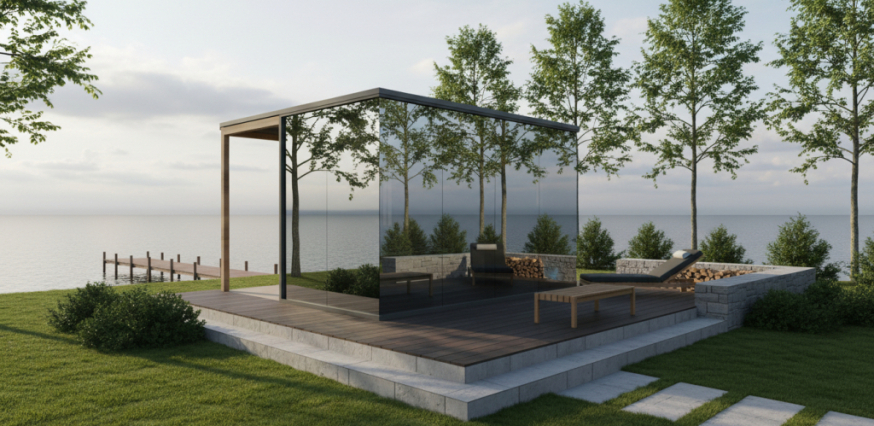tükörüveg szauna tervezésekor nem egy aktuális trendet kívántunk megfogalmazni, hanem egy olyan időtálló megoldást, amely generációkra tervezve is értelmezhető marad. A kiindulópont egy tudatos kérdés volt: miként válhat a szaunázás a mindennapok természetes részévé, nem alkalommá, hanem állandó minőséggé. A tükörszauna koncepció már az első gondolatoktól egységes rendszerként formálódott, ahol az építészeti megjelenés, a funkció és a használati élmény egyetlen, hosszú távra szóló döntéssé áll össze.