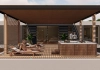 A társalgó részen egy extravagáns TV-fal kapta a fő szerepet. Természetesen a faanyag választása is nagyon fontos, ebben az esetben egy csokoládé színű Thermowood Kőrisre esett a választás.